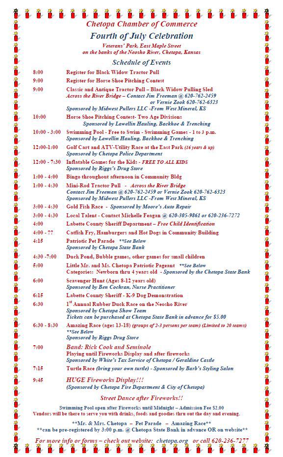 Special thanks to the Chetopa Fire Department and the City of Chetopa for the wonderful fireworks display!